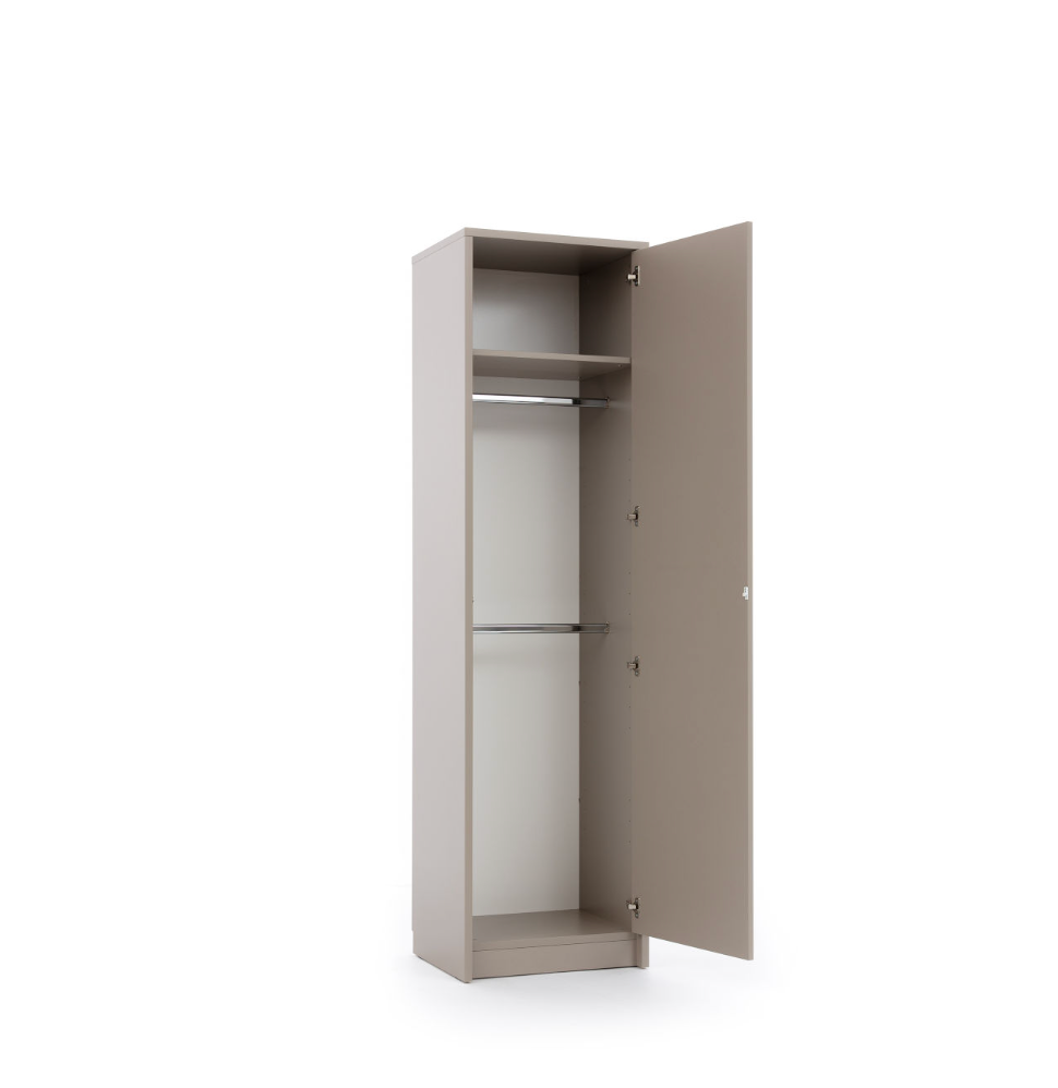 Praktiška ir talpi spinta, turinti du kabinimo strypus bei viršutinę lentyną sulankstytiems drabužiams ar aksesuarams. Puikiai dera su vertikalia GS sulankstoma lova – sukurta išmaniam, vientisam daiktų laikymui šiuolaikiniuose interjeruose.