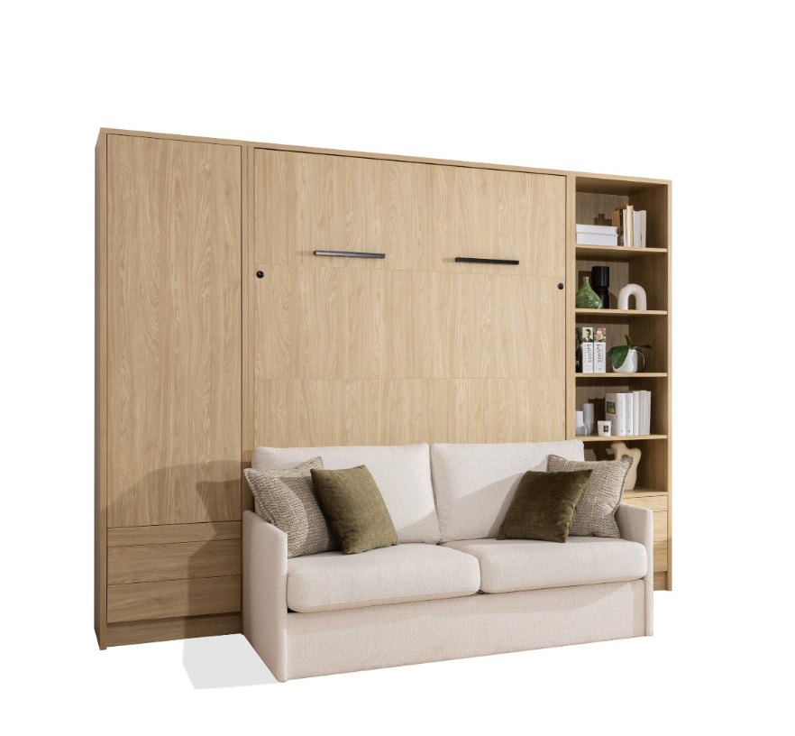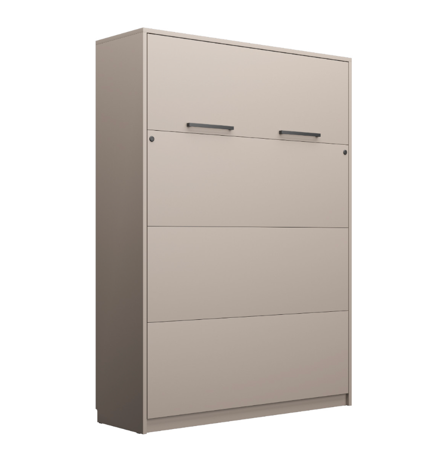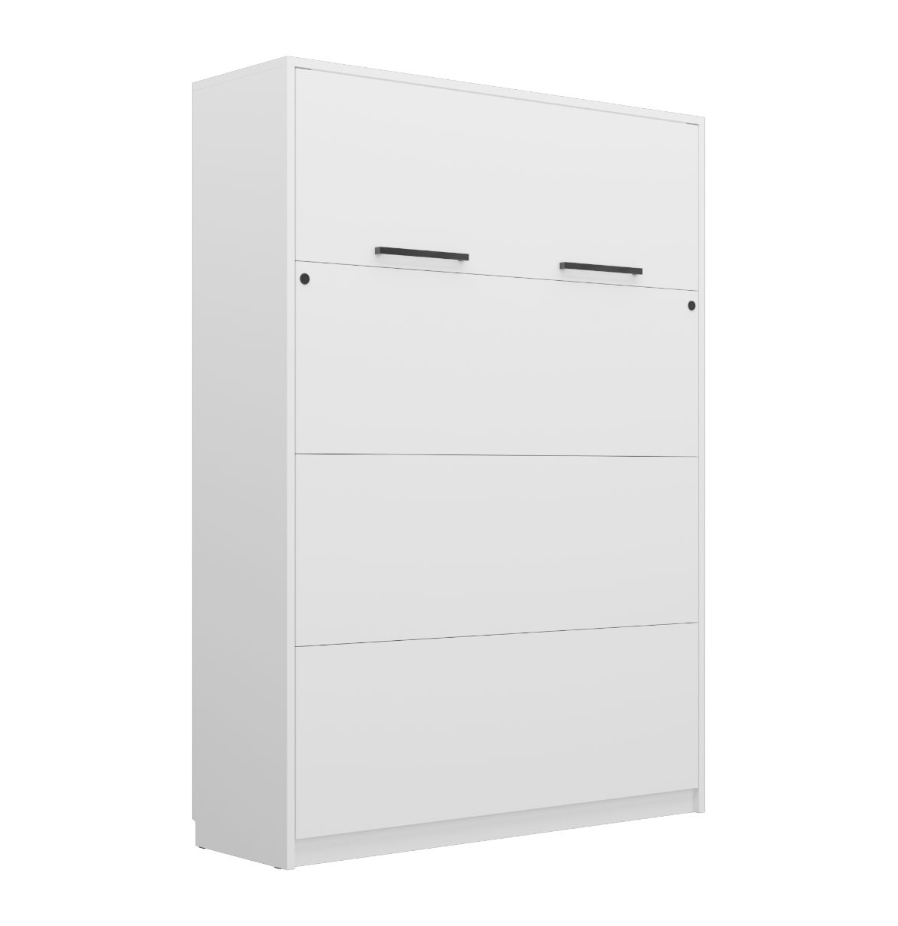 Vertikali sieninė lova su patogiomis vidinėmis lentynomis, apsaugančiomis daiktus nuo iškritimo. Patogi išskleidžiama lova turi diržus patalynei fiksuoti. Lentynos su LED apšvietimu, kurį galima valdyti nuotoliniu pulteliu (papildoma opcija). Patogus ir saugus lovos atidarymas bei uždarymas užtikrinamas dujiniais amortizatoriais. Tvirta ir ilgaamžė konstrukcija – korpusas pagamintas iš 25 mm storio baldų plokštės. Apdaila – balta matinė (korpusas) ir balta blizgi (fasadai).