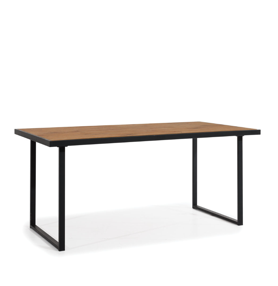 Originalus, tvirtas ir didelis loft stiliaus stalas, pagamintas iš juodo metalo ir baldų plokštės Lancelot ąžuolo spalvos.
