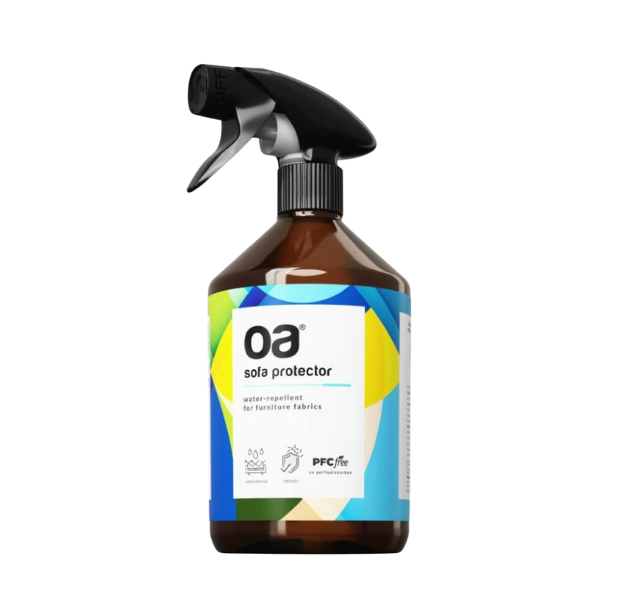 Nenaudokite odai ir dirbtinei odai. Oa Sofa Protector įsiskverbia giliai į pluoštus ir prie jų prisitvirtina, sukurdamas mikroskopinę plėvelę, kuri atstumia vandenį ir nešvarumus. Ji neleidžia audiniui sugerti drėgmės, riebalų ir prakaito bei palengvina bet kokio pobūdžio nešvarumų pašalinimą. Po padengimo audinio paviršius išlieka pralaidus garams, todėl bet kokia drėgmė natūraliai išgaruoja iš audinio struktūros, o tai sudaro nepalankias sąlygas bakterijoms ir pelėsiui. Nekeičia spalvos ir nesukelia vandens dėmių. Be to, aktyviosios sidabro dalelės apsaugo audinį, todėl jis ilgai išlieka šviežias. Kad išvengtumėte spalvos pakitimų, gaminį tepkite ant viso paviršiaus. Patikrinta dermatologiškai. Neturi įtakos audinio ilgaamžiškumui. Sudedamosios dalys iš tvarių šaltinių.