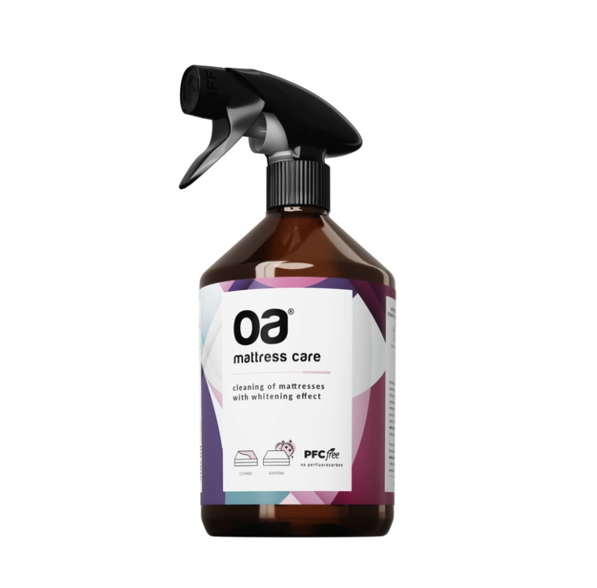 Itin veiksminga valymo priemonė, skirta įsisenėjusiems nešvarumams nuo čiužinių paviršiaus pašalinti. Priemonėje esantis aktyvusis deguonis cheminės oksidacijos būdu pašalina įvairių rūšių dėmes ir nemalonius kvapus. OA MATTRESS CARE susidoros su dėmėmis, ypač nuo gėrimų ir kūno skysčių. Jis ištirpina ir pašalina nusilupusį epidermį, kuris yra terpė grybeliams, bakterijoms ir erkutėms augti. Paviršius išliks švarus, gaivus ir papildomai išbalintas dėl sudėtyje esančių baliklių. Čiužinys atgaus estetišką, nepriekaištingą baltą spalvą be šveitimo. Be to, OA MATTRESS CARE sudėtyje yra sidabro nanodalelių, kurios apsaugo paviršių ir palaiko sanitarinę kokybę.